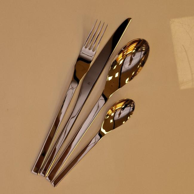 Het couvert bestaat uit een tafelvork, tafelmes, tafellepel, en een koffielepel.