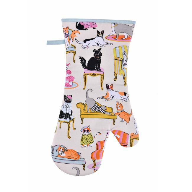 Goed isolerende ovenwant van katoen, met leuke print van verschillende katten.