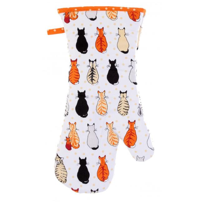 Goed isolerende ovenwant van katoen, met leuke print van verschillende katten.