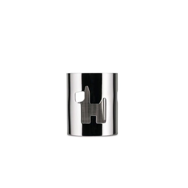 Uit de serie 'Girotondo King Kong'. Rvs, 5 cm hoog, 4,2 cm breed.
