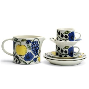 Dit servies is ontworpen is 1969 voor Arabia door Birger Kaipiainen. Zijn ontwerpen zijn de herkennen aan heldere en kleurrijke decoraties. Verzadigd van kleur en overdadig, maar ook met een delicate toets. Zijn tijdgenoten noemden hem "de prins van keramiek" en "koning van de tekenaars".
