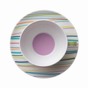 De kleur Sunny Stripes combineert heel leuk met elke andere kleur van Sunny Day; de kleuren Sunny Day New Red en Waterblue komen er bijvoorbeeld in terug. De kleuren en serviesdelen zijn makkelijk te combineren en het servies kan zo groot en uitgebreid of zo kleinschalig en eenvoudig worden gemaakt waar nodig.